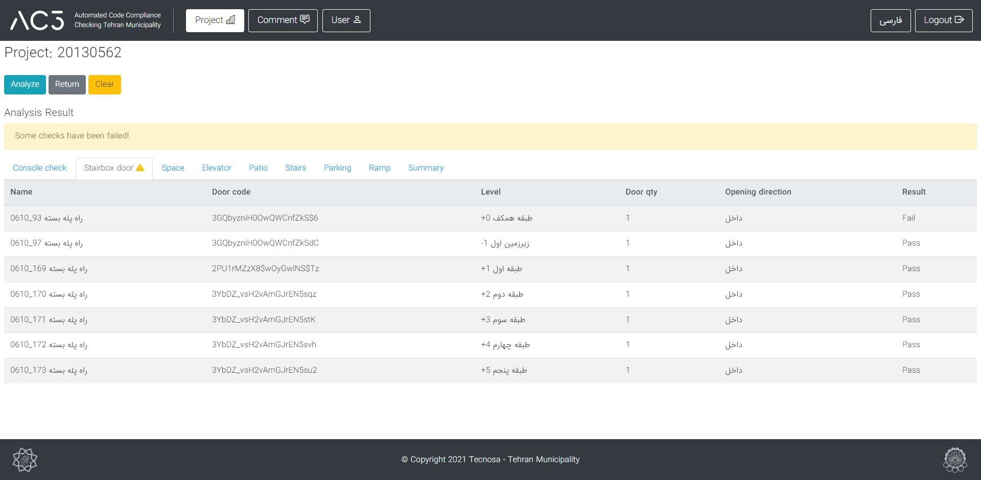 - نمایش نتایج بررسی ضوابط در محیط سه بعدی نرم افزاری